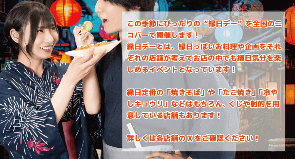 その他にも店舗毎に縁日っぽいお料理や、イベントを用意しています!詳しくはXの店舗アカウントをご確認ください!